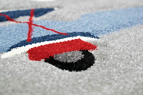 CARPETIA Tappeto per Bambini Tappeto per apprendimento aeroplani Biplano mongolfiere Grigio Blu Größe 140x200 cm