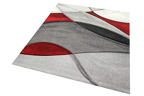 CARPETIA Tappeto Moderno Tappeto Moquette Design Onda Nero Grigio Rosso Größe 80x150 cm