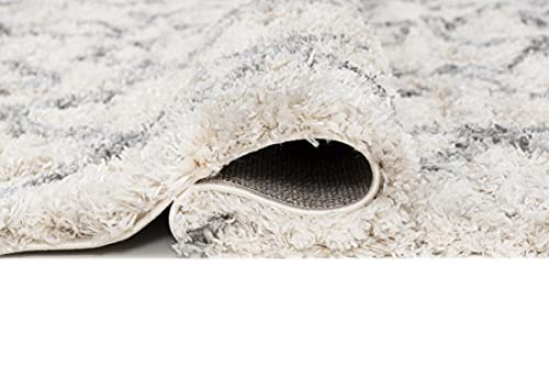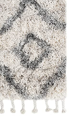 Carpeto Tappeto con Frange Boho - Shaggy Stile Scandinavo - Motivo Etnico - Morbido e Soffice Pelo Alto 30 mm - Collezione AZTEC - crema - 80 x 300 cm