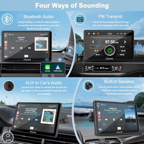 Carpuride W101 Autoradio Apple Carplay e Android Auto senza fili, Portatile 10,1 Pollici Touchscreen Stereo Auto con AirPlay Mirror Link,Bluetooth 5.0,Navigazione,Siri,Google,Trasmettitore FM/AUX.