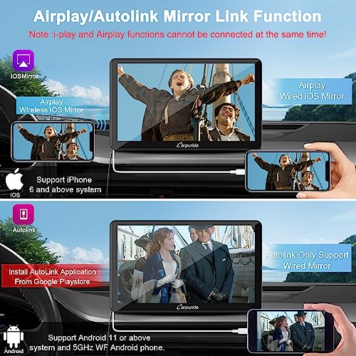 【IOS/Android Collegamento allo specchio】: Carpuride Autoradio supporto collegamento specchietto può sincronizzare contenuti audio, video e applicazioni dal telefono allo schermo carplay in tempo reale, offrire un'esperienza d'uso più ricca. supporta la maggior parte dei telefoni IOS/Android, IOS: Airplay Senza fili/Cavo Collegamento a specchio, per iPhone 6 e sistemi superiori, per Android: Autolink SoloSupporto Cablata Collegamento a specchio per sistemi Android 11 o superiori.