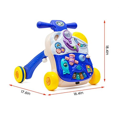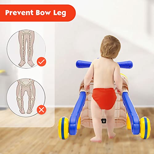 BABYWALKER MULTIFUNZIONALE: Questo girello da seduto a piedi consente al bambino di camminare mentre spinge ed esercita una forza equilibrata su entrambi i piedi per superare efficacemente la camminata con le gambe arcuate. E la struttura a piramide consente tre punti per sostenere il corpo e prevenire il ribaltamento. Inoltre, questo girello ha pannelli di gioco rimovibili come forme di ingranaggi, luci e musica per far giocare e imparare il tuo bambino
