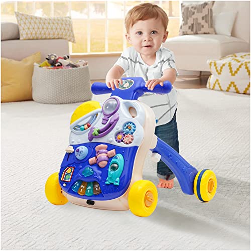 Carrellino Primi Passi Rimovibile Regolabile in Altezza,Primi Passi per Bambini Multifunzionale con Luce,Giocattolo Elettronico Educativo con Musica e Suoni,Girello per 9+ Mesi