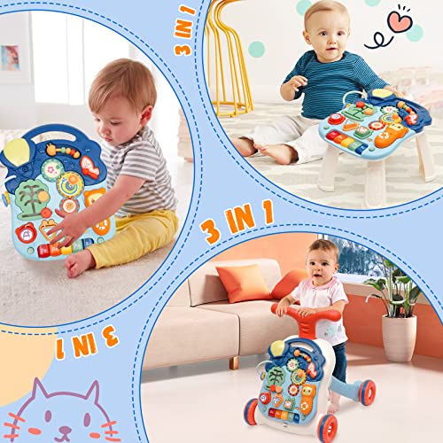 3 in 1 Carrellino Primi Passi Rimovibile Regolabile in Altezza,Primi Passi per Bambini Multifunzionale con Luce,Giocattolo Elettronico Educativo con Musica e Suoni,Girello per 6-36 Mesi