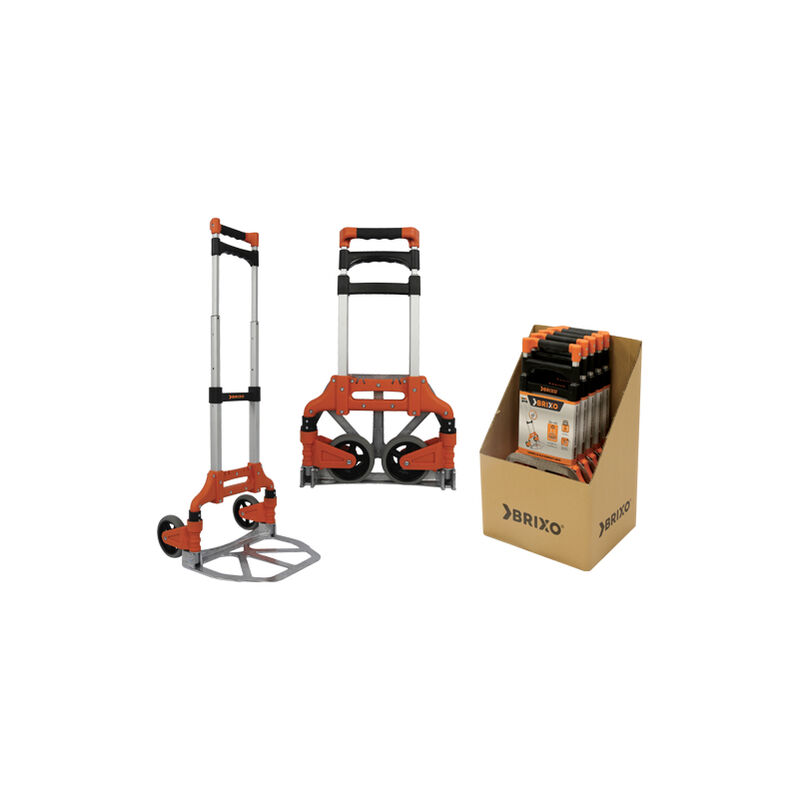 Carrello richiudibile. struttura e piano appoggio in alluminio 38x27 cm. portata 60 kg. dimensioni 40x40xh90/100 cm. - chiuso 5x38xh63 cm. confezione in display