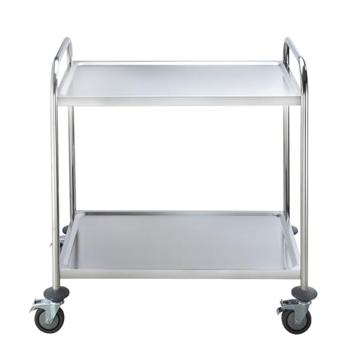 DXP Carrello da Cucina in Acciaio con 2 Ripiani,Carrello di Servizio 86 x 54 x 94cm YKR-L2