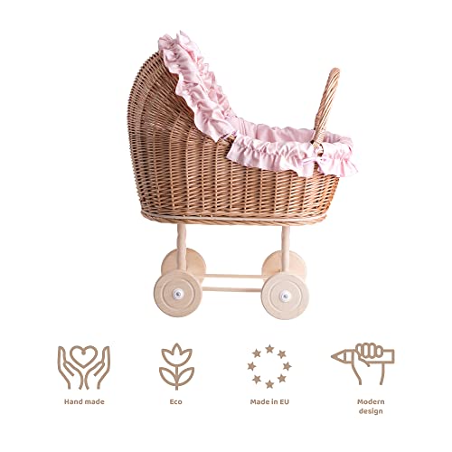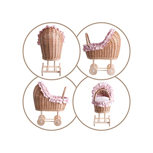 UN carrello, UN letto per bambole in vimini, giocattoli in salice, carrello per bambole in vimini, carrello per bambole in vimini (rosa 2)
