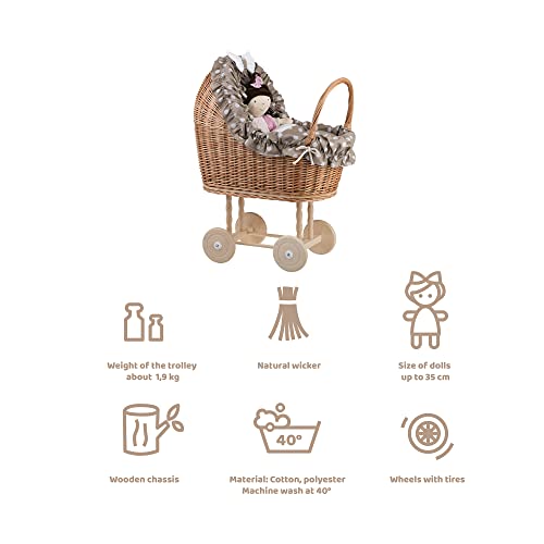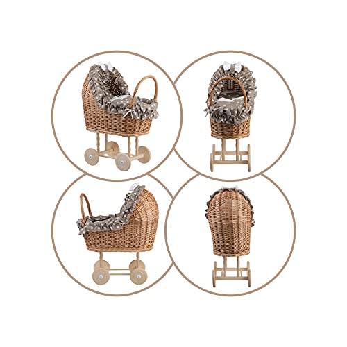 UN carrello, UN letto per bambole in vimini, giocattoli in salice, carrello per bambole in vimini, carrello per bambole in vimini (beige)