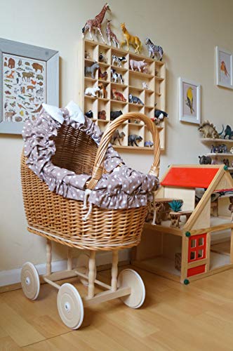 Passeggino per bambole con bordo a pois in beige