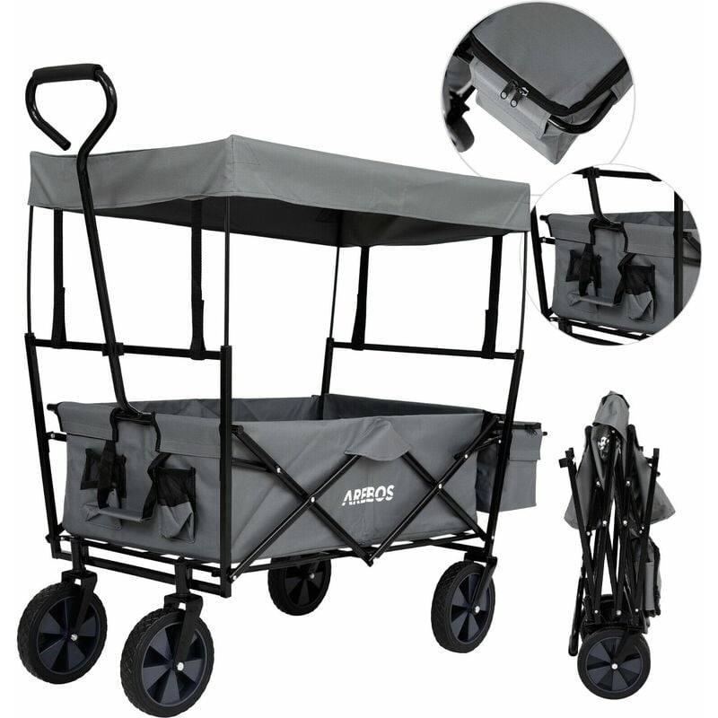 PROTEZIONE - Il tetto apribile rimovibile è protetto dai raggi UV per garantire una protezione ottimale agli occupanti o alle merci trasportate. Allo stesso tempo, il tetto in tessuto di nylon resistente e di alta qualità funge da protezione contro la pioggia. [COMPACT] Una volta ripiegato, il carrello può essere riposto in cantina o nel bagagliaio dell'auto, anche se di dimensioni ridotte. [SPACIOUS] Una tasca posteriore XXL con cerniera e due reti supplementari per bevande offrono spazio per rinfreschi e piccoli bagagli. Così tutto è a portata di mano durante il vostro viaggio! [FLESSIBILE] La carrozzina è dotata di ruote anteriori girevoli a 360°. Grazie alle due stabili ruote posteriori, la carrozzina rimane stabile anche quando è ripiegata.. [PIACERI] Il resistente tessuto in nylon e la stabile struttura del telaio offrono un carico massimo di 70 kg. Ciò significa che la carrozzina AREBOS ha spazio sufficiente per le escursioni con i bambini, le feste o altre attività del tempo
