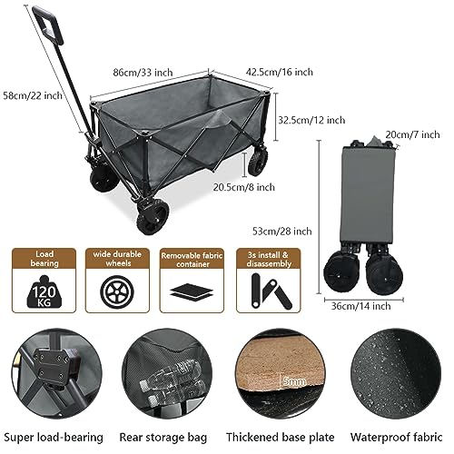 eccellente capacità di carico, questo carrello del carro supporta fino a 260 libbre. Il robusto telaio in acciaio e la tavola di legno nella parte inferiore, è più forte del normale carrello. È un'opzione eccellente per l'uso all'aperto, la giornata in spiaggia, il giardinaggio, il campeggio, lo shopping, la pesca.