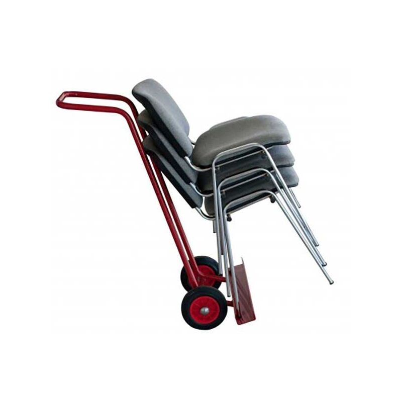 USO - Carrello per spostare facilmente le sedie impilate - Attrezzatura di movimentazione essenziale per tutti gli enti locali e gli ambienti amministrativi: municipio, mensa, sala polivalente, scuola, college, università, sala riunioni, sala ricevimenti, ecc. - Progettato per un uso intensivo - Maniglia curva per una migliore presa - Schienale alto e labbro flangiato per un sostegno ottimale delle sedie SPECIFICHE - Dimensioni (hxlxp): 1100 x 650 x 468 mm - Dimensioni delle forche (lxp): 650 x 80 mm - Ruote in gomma per pavimenti lisci 260mm