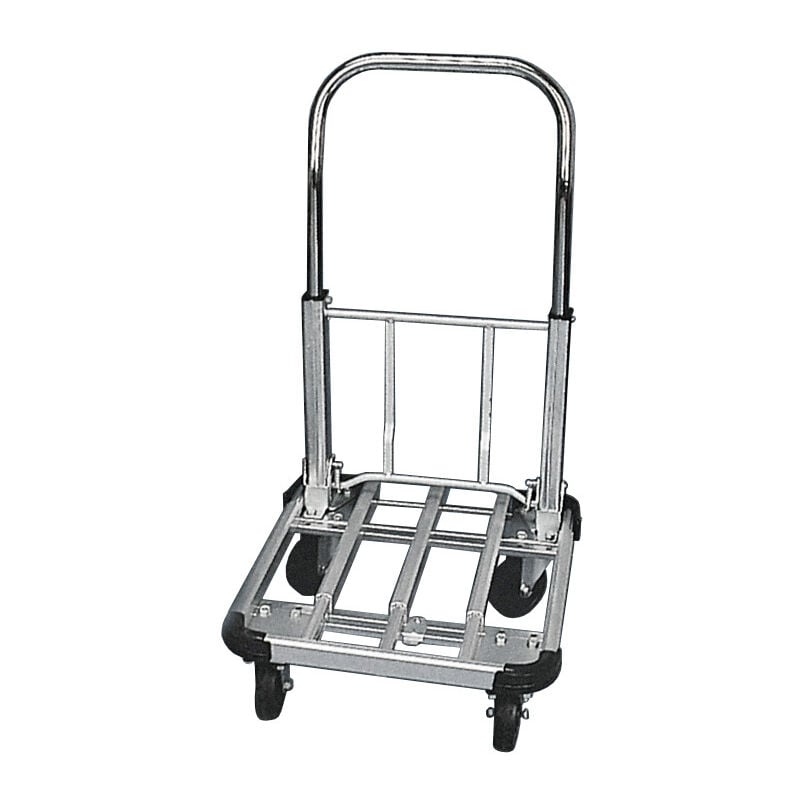 In alluminio, manico telescopico. Con 4 ruote. Dimensioni cm 41x42 Altezza cm 57÷67 Portata 150 kg