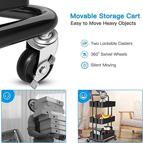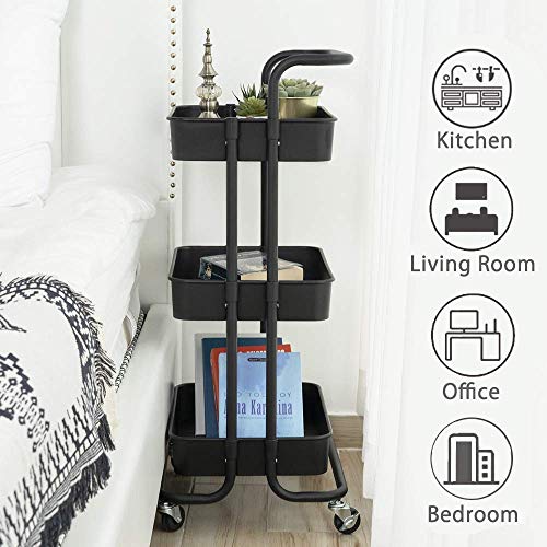 Carrello portaoggetti - 3 ripiani, organizer multiuso, per ufficio, bagno, cucina, camera dei bambini, lavanderia, colore nero