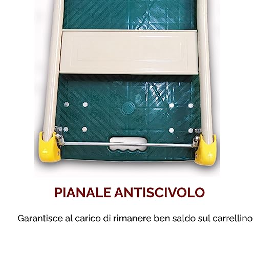 ✅Piano in plastica dura antiscivolo che garantisce al carico di rimanere ben saldo sul carrellino. Inoltre sul pianale è presente una comodissima maniglia ergonomica utile per il trasporto del carrello