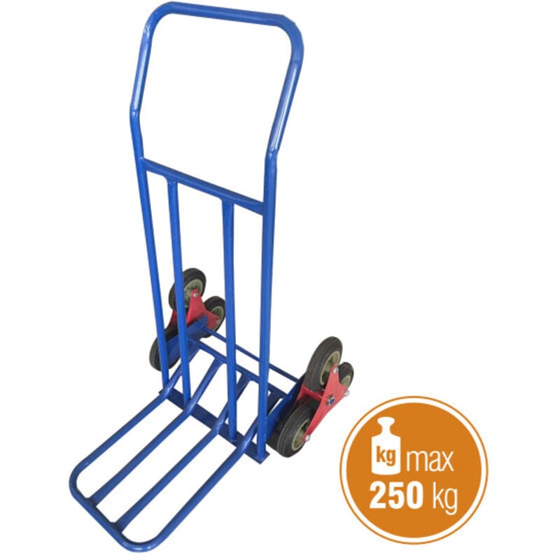 Carrello ribaltabile saliscala Verdelook Carrello ribaltabile saliscala dotato di sistema 3+3 ruote che garantisce una portata di 120 kg. Perfetto sia per salire facilmente le scale, che per essere portato agevolmente sulle pavimentazioni accidentate o sui gradini dei marciapiedi. Caratteristiche: Dimensioni: 130 x 49 x 57 cm Materiale: Tubolare verniciato Colore: Blu Portata: 120 Kg