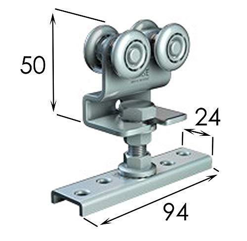 Sistema ROLL-GE 20, Carrello regolabile in acciaio con perno M10., Ruote Ø mm 24, materiale:, Acciaio (Art.23), Acciaio-nylon (Art.45), Delrin (Art.1223) a completa corona di sfere., Portata massima: 45 kg (Art.23) - 45 kg (Art.45) - 35 kg (Art.1223)