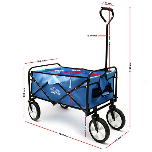 Carrello a 4 ruote manuale pieghevole blu 80x46cm Carretto da trasporto offroad