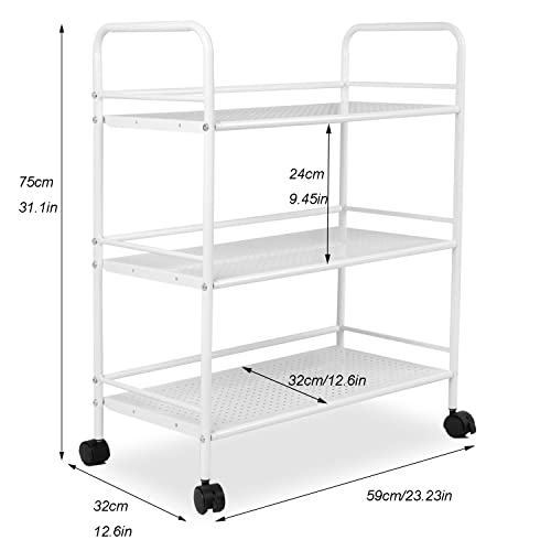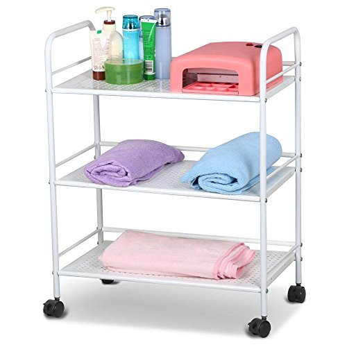 DRM Carrello di stoccaggio a 3 livelli, carrello per salone, carrello con ruote, carrello di immagazzinaggio per salone di bellezza, bianco