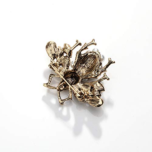 Carreor - Confezione da 2 spille con strass e perla, a forma di ape miele, con ciondolo a forma di ape, in cristallo dorato o argenteo, per donne (coda di perle + ali di perla)