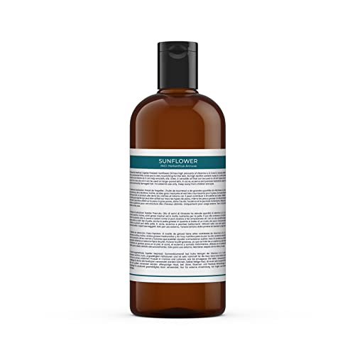 Descrizione: L'olio di girasole ha elevate quantità di vitamine A, B, D ed E, minerali, lecitina, inulina, acidi grassi insaturi ed è molto nutriente per la pelle. Il suo alto contenuto di lecitina lo rende un prodotto utile in creme e lozioni in quanto può aiutare a emulsionare gli oli.
