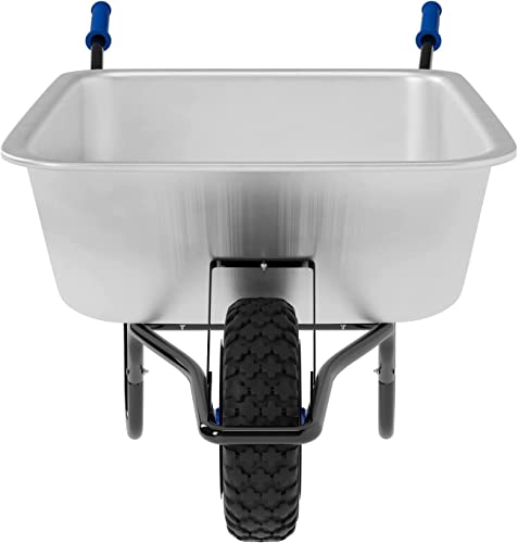 Carriola - 100l, Carico Massimo 210kg, Vasca Zincata, Ruota Pneumatica, Telaio in Acciaio, Colore a Scelta- Carriola da Giardino, Cantiere, a Spinta, Galvanizzata, per Calcestruzzo vari colori (Blu)