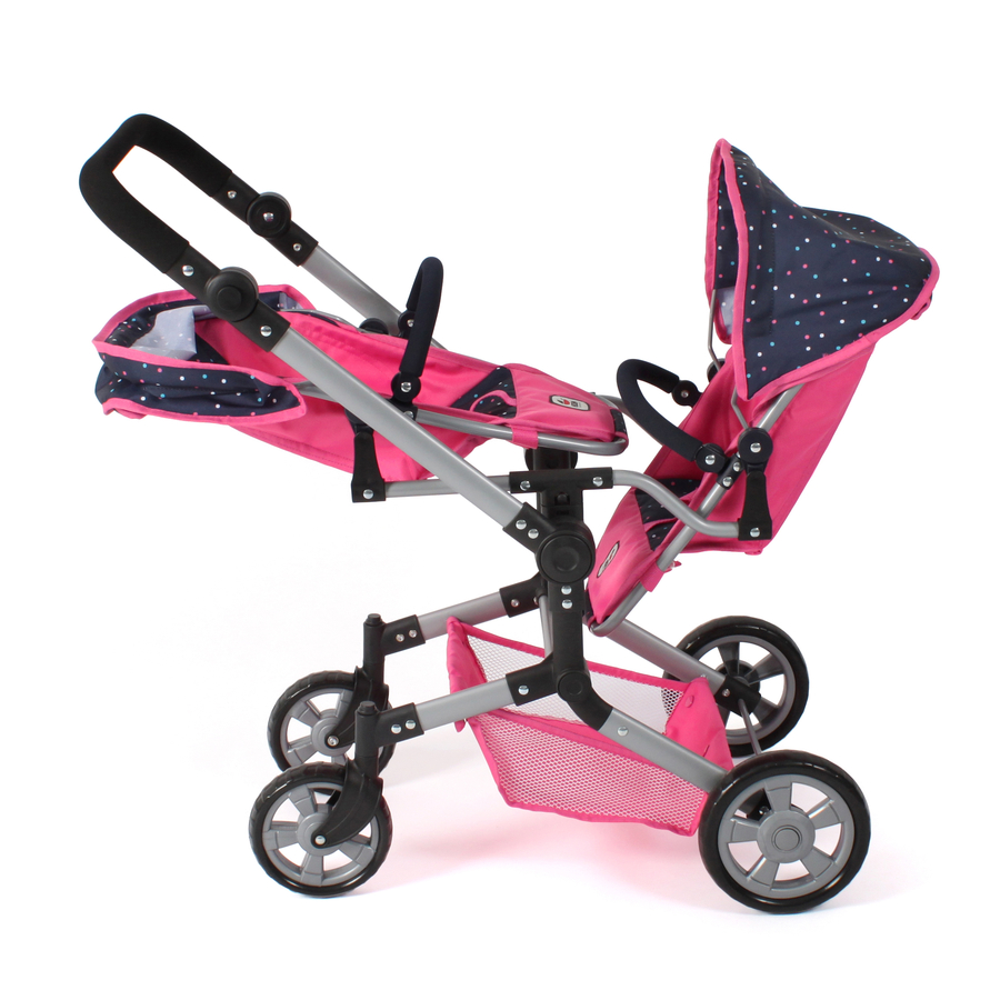 Dettagli del prodotto: Età: da 4 anni Moderno passeggino gemellare con due sedili sportivi staccabili che possono essere regolati fino alla posizione reclinabile e possono essere posizionati entrambi di fronte alla mamma della bambola o faccia a faccia. Questo si traduce in una moltitudine di combinazioni possibili per la mamma della bambola Girare gli angoli è un gioco da ragazzi grazie alle ruote anteriori piroettanti Il maniglione regolabile in altezza da 50 a 82 cm circa si adatta all'altezza della mamma della bambola. La barra di spinta può essere orientata in modo da poter guidare la carrozzina da entrambi i lati. La grande rete portabagagli consente di trasportare numerosi accessori Il telaio può essere ripiegato Adatto per bambole fino a 50 cm Dimensioni e peso: Dimensioni (lunghezza x larghezza x altezza): 80 x 41 x 79 cm Peso: 4,4 kg Materiale e cura: Materiale: acciaio, poliestere, plastica Incluso nella fornitura: 1 x carrozzina per bambole Linus Duo, rosa Avvertenze e istruzioni di sicurezza: Attenzione: non adatto a bambini di età inferiore ai 3 anni per il rischio di soffocamento dovuto alle piccole parti che possono essere ingerite.