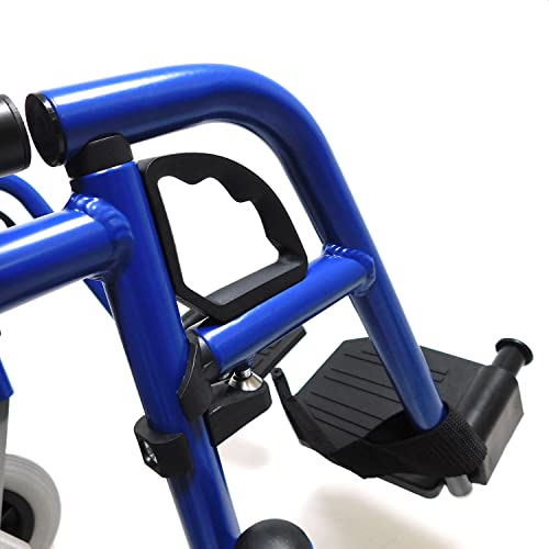 TELAIO PIEGHEVOLE E LEGGERO: La carrozzina è dotata di un telaio in alluminio pieghevole e doppia crociera, il che la rende facile da trasportare e riporre quando non in uso.