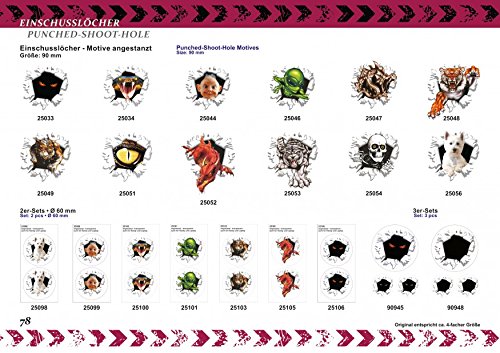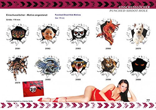Carstyling XXL Sticker ripped torn bullet hole 90 mm motive cat