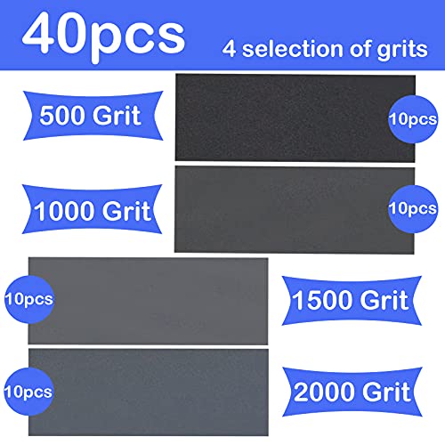 Quantità e dimensioni: riceverete 40 fogli di carta smerigliata, grana 500, 1000, 1500, 2000, 10 fogli per grana, dimensioni 23 x 9 cm, sufficienti per l'uso quotidiano.