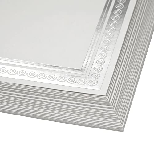 Carta per Certificati Premio, Confezione da 50 Fogli di Carta Avorio con Bordo in Lamina Argento, 21.6 x 28 cm Ciascuno