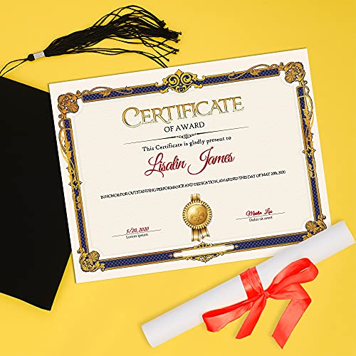 1. Carta per stampanti di alta qualità: carta certificata di alta qualità, 21,6 x 27,9 cm, presenta un accattivante bordo in lamina d'oro e carta certificato con bordo blu.