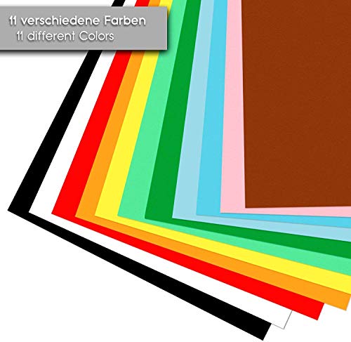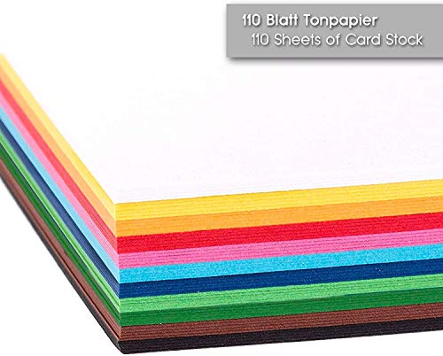 Forma stabile con buona sensazione al tatto: la nostra carta colorata è robusta e facile da tagliare, grazie al formato DIN A5, 148 x 210 mm, facile da maneggiare, grammatura: 300 g/m², 110 fogli con 11 colori ciascuno
