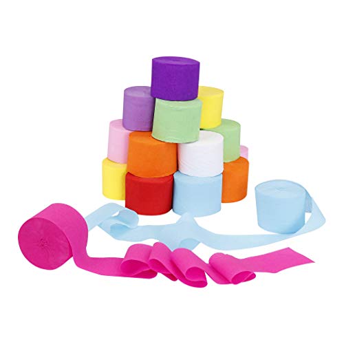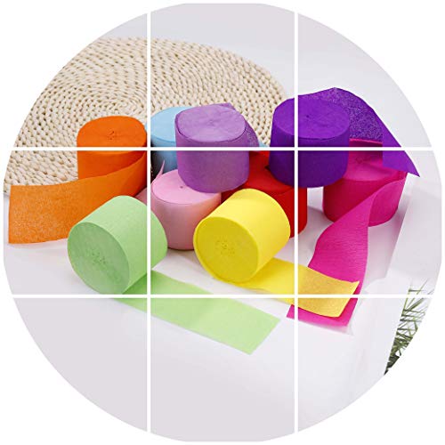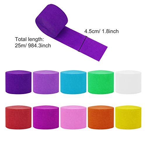 Set di stelle filanti in carta crespa: viene fornito con 20 rotoli di stelle filanti in carta crespa in 10 colori assortiti, ogni rotolo di stelle filanti in carta crespa Larghezza: 1,77 pollici / 4,5 cm;