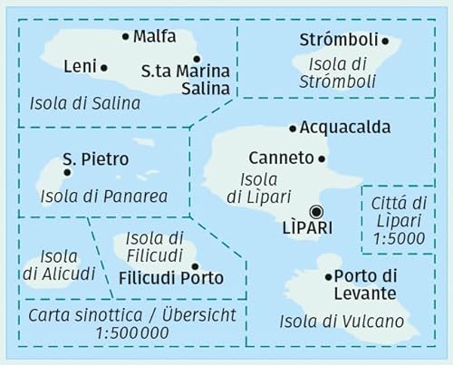 Carta escursionistica n. 693. Isole Eolie e Lipar 1:25.000. Ediz. italiana, tedesca e inglese: Wandelkaart 1:25 000