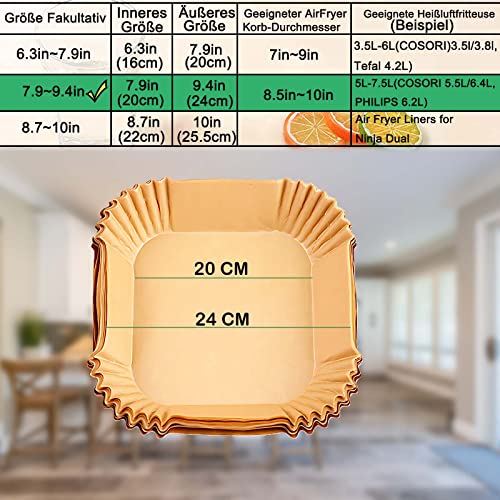 Carta Forno per Airfryer, 100 Pezzi Carta Forno per Friggitrice ad Aria Calda, Carta Pergamena Monouso Antiaderente Quadrata per Friggitrice ad Aria Calda, Forno e Griglia (20~24 cm)