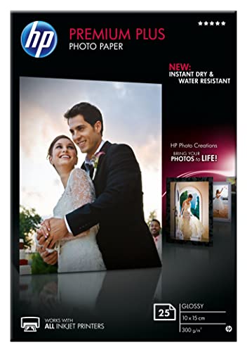 HP Carta Fotografica Lucida HP Premium Plus, CR677A, Grammatura 300 g/m2, Formato 10 x 15 cm, Confezione da 25 Fogli