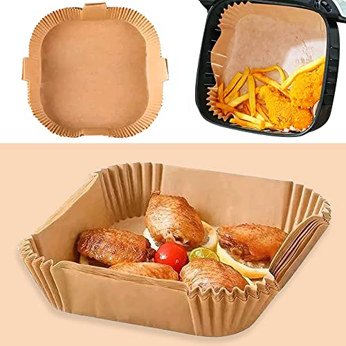 Carta Friggitrice ad aria, Teglie Per Friggitrice Ad Aria Quadrati, Antigrasso Antiaderente Fodera in Carta Monouso per 5.0-6.0L Air Fryer, Forno, Padelle, Microonde(17cm), 50pz