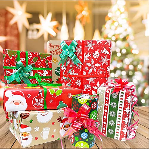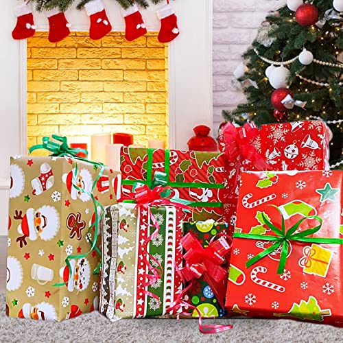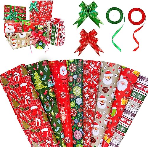Carta imballaggio Natalizia set, Con Nastri natalizi e Fiocchi regalo, 8 Pcs Carta da Regalo Natale, Carta Natale per Regali Carta da Pacchi Rossa, Collezione Di Elementi Natalizi Carta Regalo