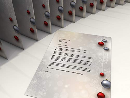 Carta da lettere natalizia palle di Natale, formato A4, 100 fogli, rosso e argento.