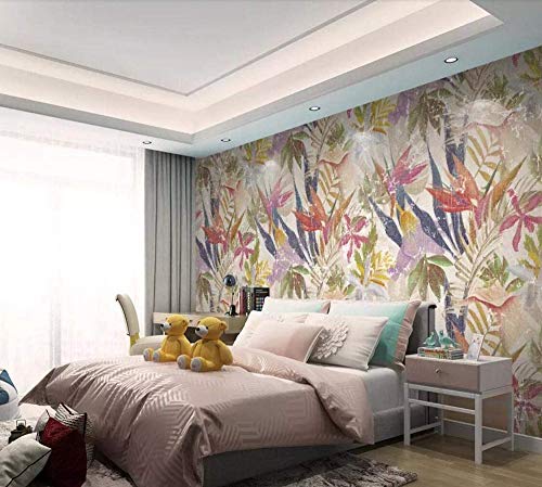 Carta Da Parati Adesiva Muro 3D Parete d'annata del fondo delle piante tropicali nordiche Fotomurali 3D Photo Wallpaper Moderna Murale (300cmx220cm)
