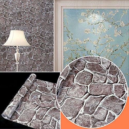 Carta da parati autoadesiva, effetto mattone/pietra, decorazione da parete per mobili, camera da letto, soggiorno, pietra marrone