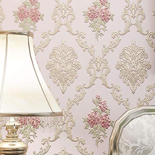 Carta da parati Carta Da Parati Autoadesiva Modello Damascato Rosa, Carta Da Parati Mobile Facile Da Incollare E Peeling, 0.53x9m Adesivi Per La Decorazione Della Casa