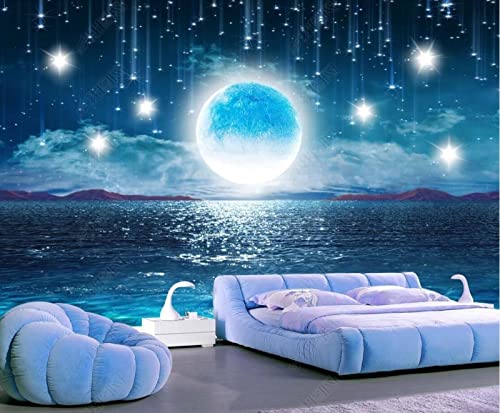 Carta Da Parati 3D Bella Notte Cielo Stellato Luna Piena Carta Da Parati Camera Letto Moderna Fotomurali 3D Gigante Murale Decorazione
