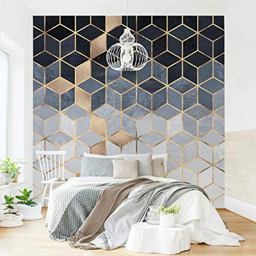 Carta da Parati - Bianco d'oro Geometria Blu- Formato Quadrato 192 x 192cm