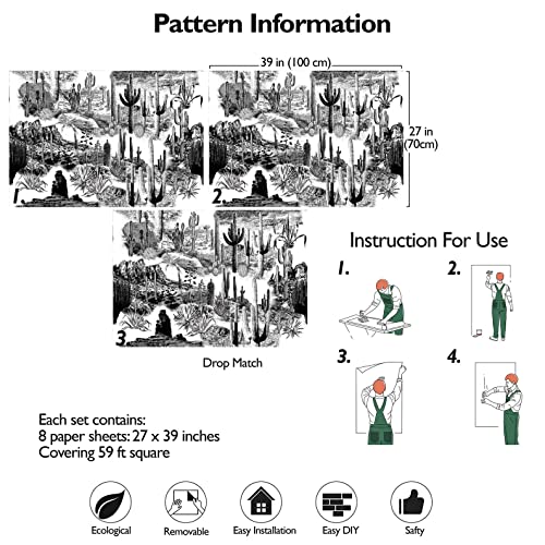 W4B Carta da parati Cactus. Carta ecologica (senza solvente). Facile da applicare/ rimuovere. 8 fogli da 70 x 100 cm (5,5 mq). Casa, Arredamento Decorazione e Ristrutturazione. Made in Italy.