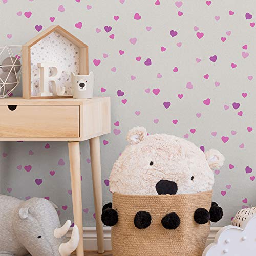Carta da parati colorata | Carta da parati multicolor con i cuori | carta da parati ideale per cameretta bambine e ragazze