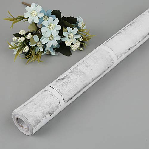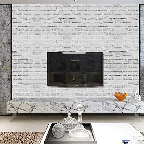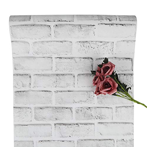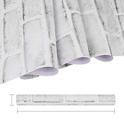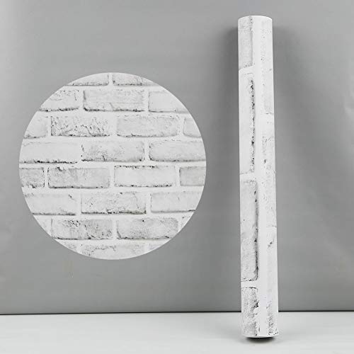 Carta da Parati Effetto Mattone Colore Grigio Chiaro Autoadesivo Rustico Rotolo di Carta da Parati Staccabile e Bastone per Decorare Cucina Camera da Letto 44,5x500cm