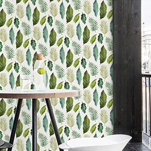 Carta da Parati a Foglia Tropicale, Carta Parati Adesiva Muro Jungle Greenery, Carta da Parati Impermeabile in PVC per la Decorazione Della Parete Dell'ufficio di Casa (40x300cm, Foglie Verdi)