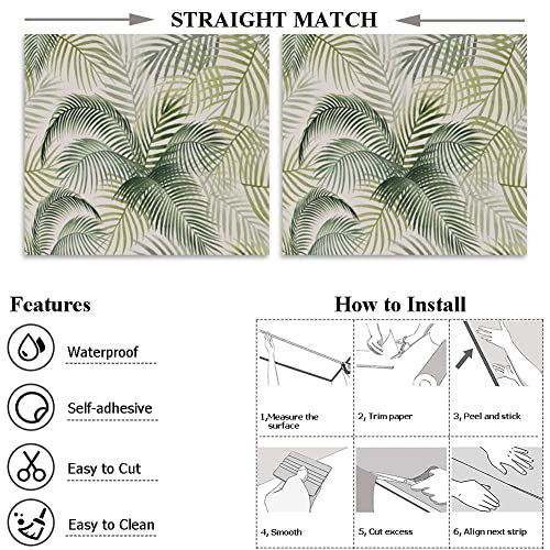 Carta da Parati Foglie Verdi, Wanweitong Autoadesiva Foglie di Palma Tropicali Carta da Parati, PVC Impermeabile Carta da Parati Stacca e Attacca per Decorazione Murale (40x300cm, Foglie di Palma)